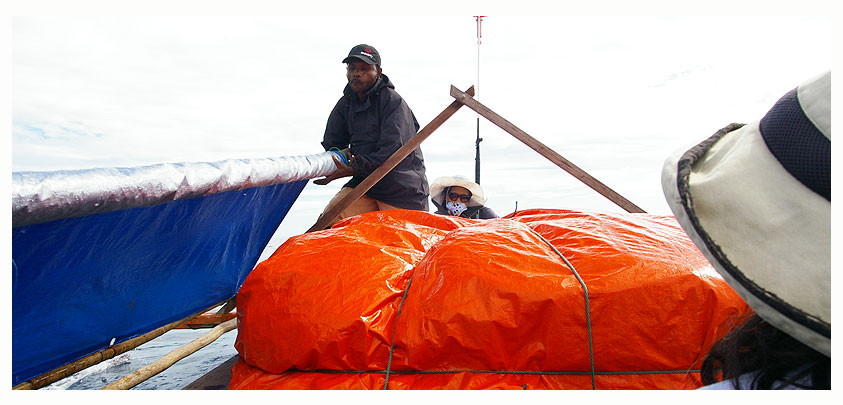 The boat ride didn’t turn out as bad as I thought it would be as it was wide enough for two to lie down side by side and it was also long. And as soon as we got out of the bay, the boatmen put up a makeshift cabin out of specially made 90-degree angled wooden supports and a tarp.